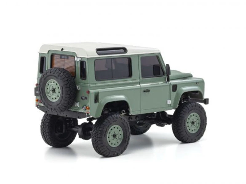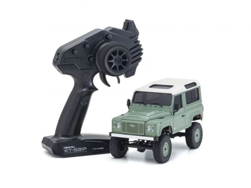 This is Kyosho Mini-Z 4×4 1/18 Land Rover Defender 90 Heritage Grasmere Green Alaska White Crawler EP w/ KT-531P Radio RTR Readyset. In 2019 the world”s most popular mini RC series, known as the Kyosho MINI-Z, celebrated more than 20 years of unmatched performance and scale realism in the hobby-grade RC category. The continuous pursuit of performance and evolution has led to the creation of a completely-new ‘MINI-Z 4×4’ design that delivers an all-new driving experience for RC fans of all stripes, with superior overall design, driving performance and high-quality injection-molded scale body construction. A significant feature of the MINI-Z 4×4 series is the greater emphasis of body detail and quality of finish that even surpasses existing benchmarks set by the MINI-Z. The body is also molded with thicker material to better resist crash damage from operation in rough terrain. Incorporating the same ladder- style frame of real 4WD vehicles, the MINI-Z 4×4 boasts a 3-link rigid axle suspension combining what would normally be two upper links into a single upper A-arm to deliver maximum suspension movement. A specially designed high-torque steering servo enables this machine to throw its elbows around in the hard terrain for excellent performance in the toughest rock-crawler conditions. The high-torque 130-size motor brings out the beast in the MINI-Z 4×4, specially geared to run well in the low to medium speed ranges common in crawling.