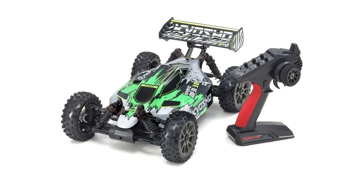Factory assembled Inferno NEO 3.0 VE Readyset delivers blistering acceleration of 0-50m in 3.5 seconds; now updated with minor changes. With its formidable reputation built on the racing scenes around the world, the VE uses the flagship model as a base to add a new brushless motor & ESC. The Syncro KT-231P+ transmitter delivers vastly improved control and features precision setting adjustments with throttle end point adjust, dual rate adjuster, plus a high-torque and high-speed steering servo. In addition, the powerful KYOSHO SPEED HOUSE brushless motor and ESC combines with big bore oil shocks and KC Cross tires to deliver superior performance on any surface. The Inferno NEO 3.0 VE allows anyone to test the bounds of common sense with powerful brushless motor acceleration.