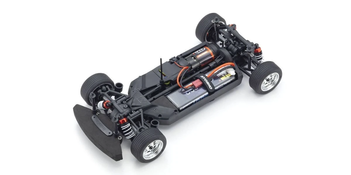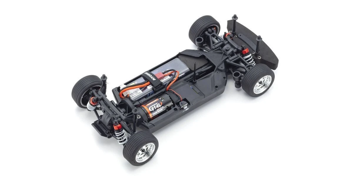 For the pure enjoyment of R/C car driving, the combination of a beautifully reproduced car body with the FAZER series chassis can’t be beaten. Kyosho has taken its standard touring car chassis and given it a full model makeover that has evolved performance to a new level. A simplified design with fewer parts has improved maintenance efficiency and reduced weight while core strength and rigidity has been increased through new materials and ribbing and stiffeners on front and rear. In addition, the symmetrical chassis design synergizes excellent front-rear balance through the suspension with responsive control, irrespective of power source. Featuring front & rear gear differentials, oil shocks and full ball bearing specs, the high durability and impact resistance allows drivers to unleash the full potential of the chassis. Brake disc wheel hubs with two different offsets (0mm, +5mm) provide compatibility with 190mm and 200mm width body styles and allows the wheelbase to be adjusted to 260mm by replacing some parts (sold separately) for compatibility with other 1/10 scale body styles, in addition the body included. The Readyset package comes fully assembled and includes everything except charger and battery for the chassis, and batteries for the transmitter.