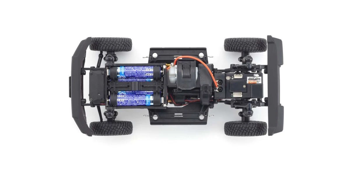 In 2019 the world’s most popular mini RC series, known as the Kyosho MINI-Z, celebrated more than 20 years of unmatched performance and scale realism in the hobby-grade RC category. The continuous pursuit of performance and evolution has led to the creation of a completely-new ‘MINI-Z 4×4’ design that delivers an all-new driving experience for RC fans of all stripes, with superior overall design, driving performance and high-quality injection-molded scale body construction. A significant feature of the MINI-Z 4×4 series is the greater emphasis of body detail and quality of finish that even surpasses existing benchmarks set by the MINI-Z. The body is also molded with thicker material to better resist crash damage from operation in rough terrain. Incorporating the same ladder- style frame of real 4WD vehicles, the MINI-Z 4×4 boasts a 3-link rigid axle suspension combining what would normally be two upper links into a single upper A-arm to deliver maximum suspension movement. A specially designed high-torque steering servo enables this machine to throw its elbows around in the hard terrain for excellent performance in the toughest rock-crawler conditions. The high-torque 130-size motor brings out the beast in the MINI-Z 4×4, specially geared to run well in the low to medium speed ranges common in crawling.
