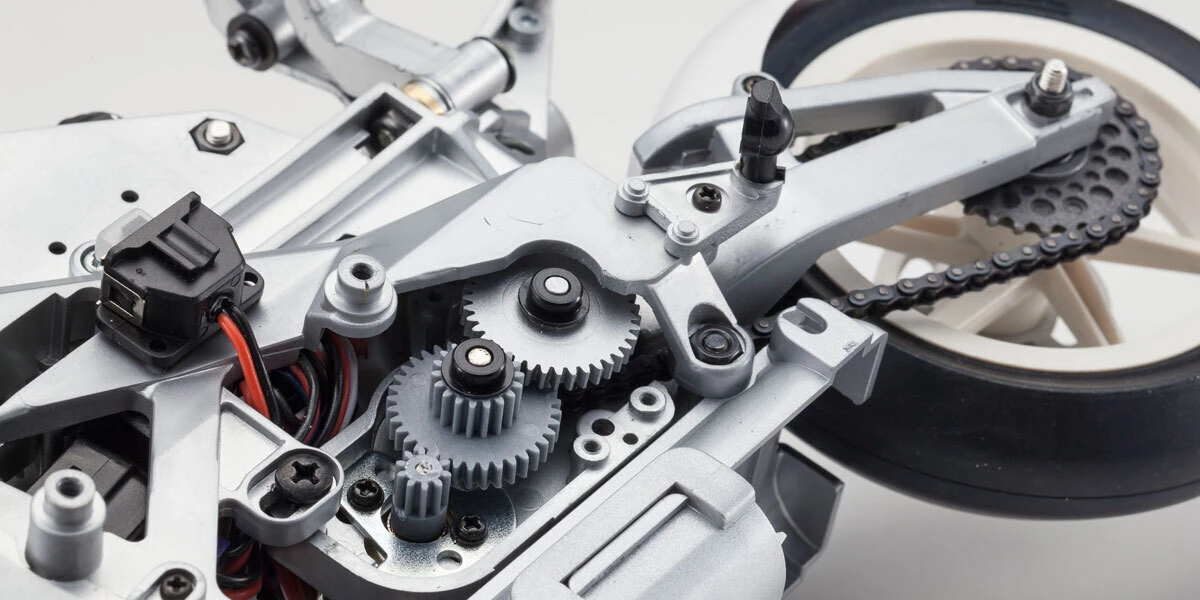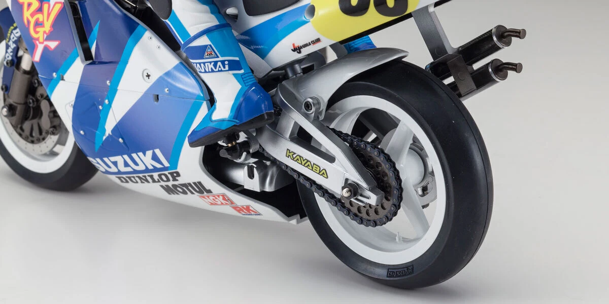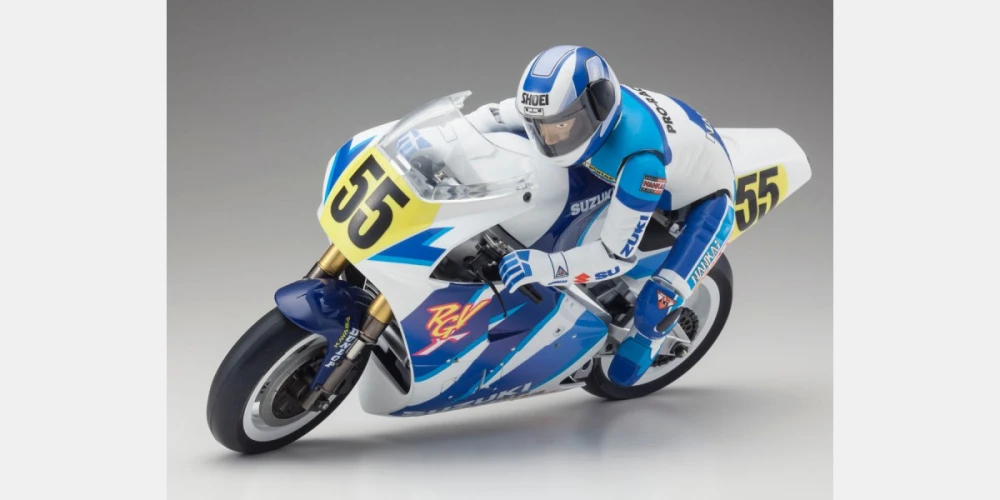 The S.D.S.S (semi direct steering system) delivers high performance fully independent motion with the rider figure construction incorporating 13 different connections so it hangs on to the bike as it leans into corners. The result is driving performance just like a real motorbike that is easy enough for anyone to control. In addition, each section of the bike is designed with an incredible level of scale detail from the body cowl, inverted front fork suspension, brake disk & calipers, wheels, drive chain, sprocket and asymmetrical swing arm to recreate a model of display standard quality. However, as only a few parts are used in construction, even beginners can enjoy the satisfaction of the assembly that only takes a short time to complete. Dive deep into the fascinating realm of R/C electric motorbike driving like never before and discover the pure enjoyment of building, displaying and driving your own Hanging On Racer.