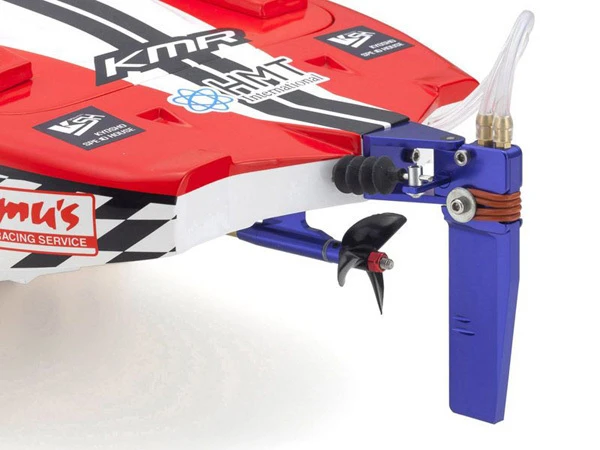 You won’t believe your eyes at this stunningly realistic recreation of a C-1 class catamaran. Built to an interior display standard, you cannot help but admire the sleek form and the high-quality finish. However, the HURRICANE 900VE is not known just for its scale appearance. Setting the benchmark for 900mm class electric racing boat performance, the precision-crafted pre-painted FRP hull is the embodiment of KYOSHO’s many years of R/C boat design know-how and incorporates the latest KYOSHO SPEED HOUSE water-cooled brushless motor and water-cooled ESC with maximum current of 120A. Combined with the precision angle of the wire drive, the hull accelerates from a standing start with minimal cavitation from the propeller to its planning posture in next to no time. Speed increases quickly after the lift from the initial acceleration as the characteristics of the low-profile catamaran hull design deliver high-speed performance across the water.