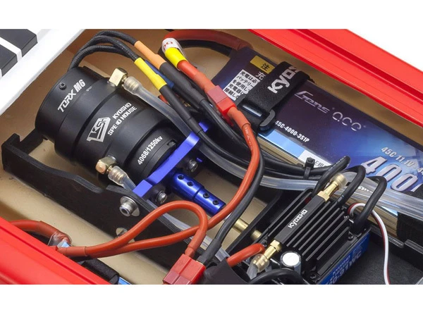 Pre-installed KYOSHO SPEED HOUSE 40x68mm large water-cooled brushless motor.