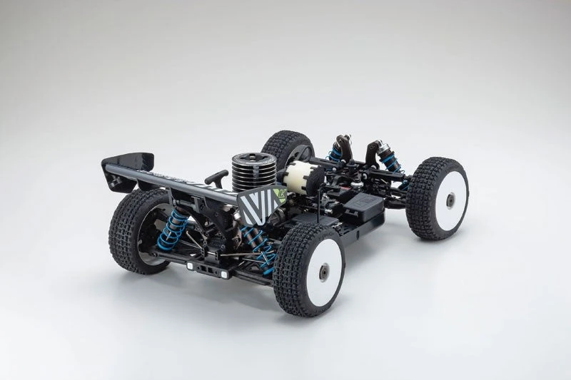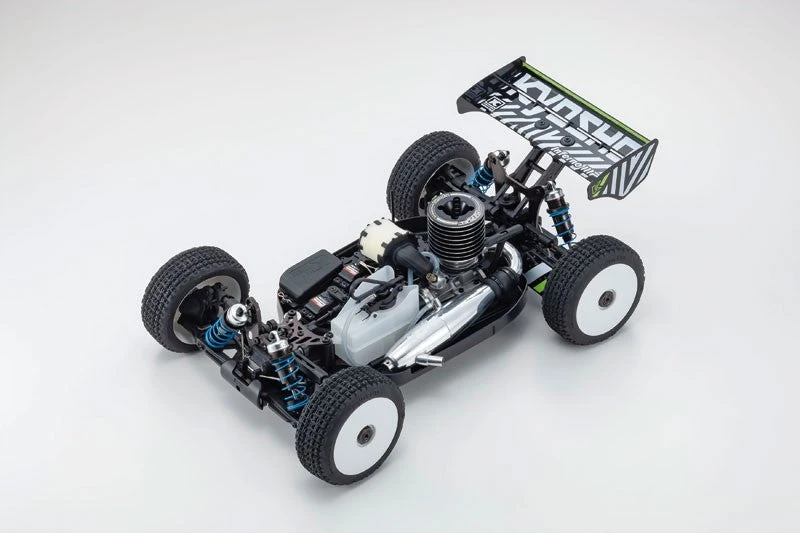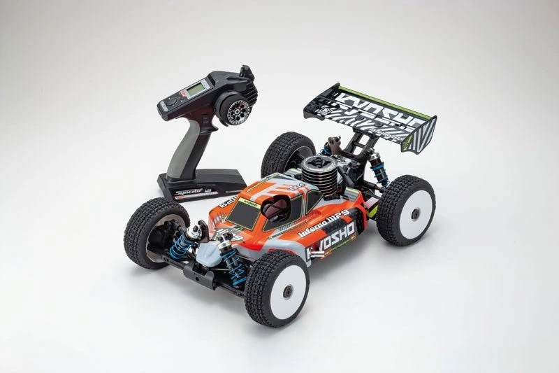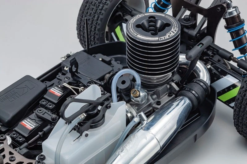 With 8 world championship titles, the Inferno has set the standard as the most powerful 1/8 scale engine racing buggy of all time. The DNA of the competition-level MP9 TKI4 model and its advanced racing technology is embodied in this Readyset. The MP9 TKI4’s signature long front sus arms and 17.5°caster angle front hub carriers realize superior cornering stability and sharp control while the adoption of a forward cabin type body increases downforce, using the Inferno’s aerodynamic performance advantage to deliver balanced cornering and optimal traction. Including the user-friendly and high torque KE21SP engine fitted with recoil starter and rear existing exhaust, anyone wishing to challenge the peak of 1/8 engine buggy performance can find the perfect racing partner in this MP9 TKI4.