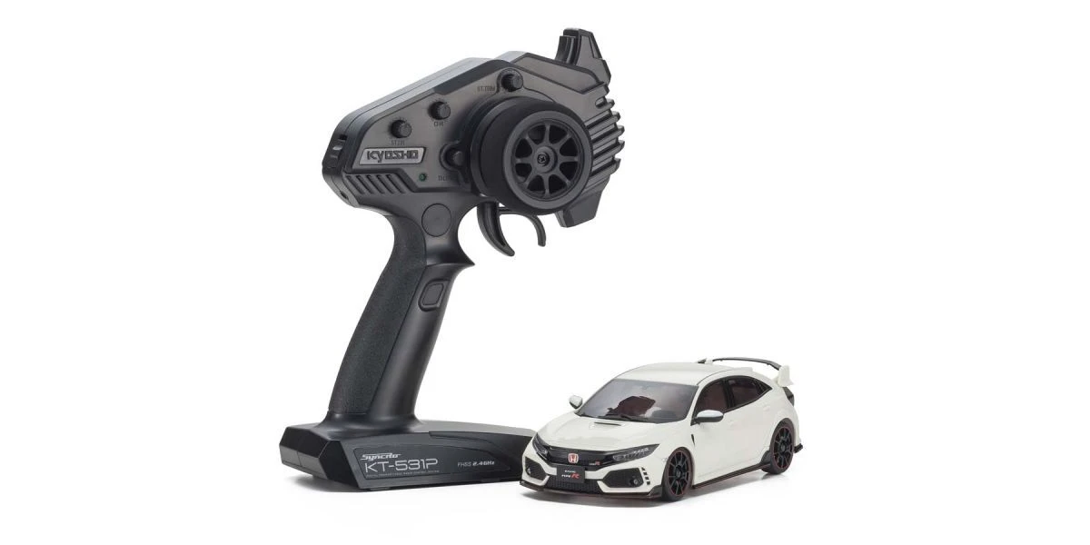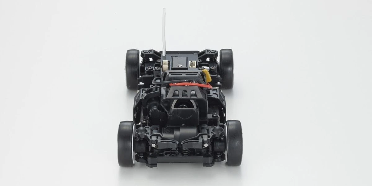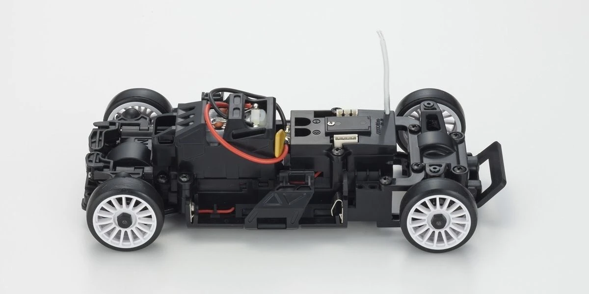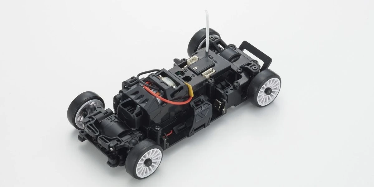 The MR-03 Readyset has a front wheel drive chassis, and has widely popular body styles in highly detailed body sets that create the incredibly realistic MINI-Z FWD series lineup. The transmitter delivers precise control from the optimal weight balance of the chassis design that incorporates the proven reliability and durability of the AWD’s drive train and suspension, as well as the servo from the MR-03. In addition to the inherent straight line stability and easy steering control of front wheel drive, linear handling from the control program on the circuit board that can be further enhanced for even easier control characteristics by installing the optional gyro unit (MZW431). Including the latest Syncro KT-531P transmitter with steering trim, throttle trim, dual rate, LED control function, and sponge steering wheel for comfort and fit, the car has a control feeling that loses nothing to rear wheel drive MINI-Z racers.