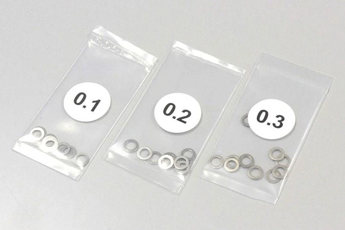 96649 540 Motor & Kingpin Shim (for 3.175mm) Shim set for 1/8″ or 3.175 shaft. 10pcs each 0.1, 0.2, 0.3mm.