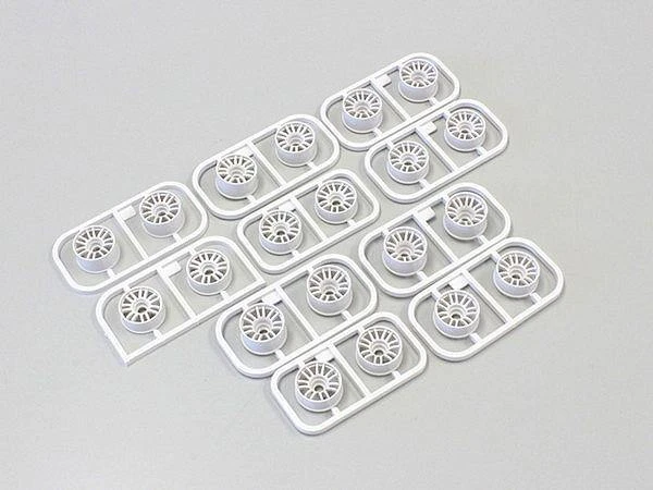 Updated multi offset wheel set for Mini-Z 2WD. RAYS RE30 styling, deleted the N+3.5 and changed to half the quantity of N 0. N+1, N+2, and W-1 are added to the set of the usual offsets. 20pcs. White color is easy to paint.