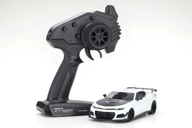 With just 8 x AAA-size batteries, the MINI-Z Racer allows anyone to enjoy the beautiful style and advanced performance of R/C cars. First launched in 2013, Kyosho has renewed the MINI-Z Racer Sports MR-03 concept to be even more user-friendly and appealing to more drivers with the MINI-Z RWD series! Widely popular body styles in highly detailed body sets create the incredibly realistic model lineup. Including the latest Syncro KT-531P transmitter with steering trim, throttle trim, dual rate, LED control function, the sponge grip of the steering wheel provides comfortable fit for precision control feel. The set also includes a car body finished to display-model standard that matches stunning style with the performance, reliability and durability of the MR-03 chassis. The new control program on the circuit board provides linear handling characteristics and can be further enhanced for even easier control by installing the optional gyro unit (MZW431). This series represents the perfect package for a deep dive into the amazing world of R/C cars!
