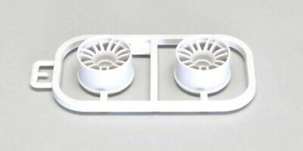 Wide +2mm offset white RAYS RE30 wheels for Mini-Z 2WD, 1 pair. Genuine Kyosho option parts for maximum performance and durability!
