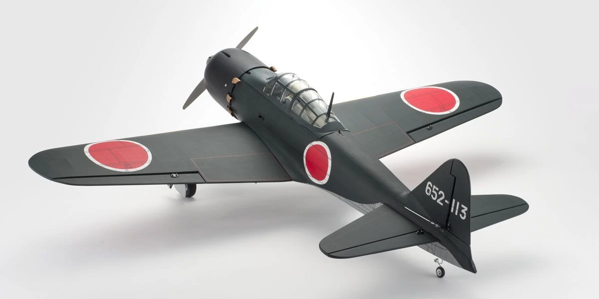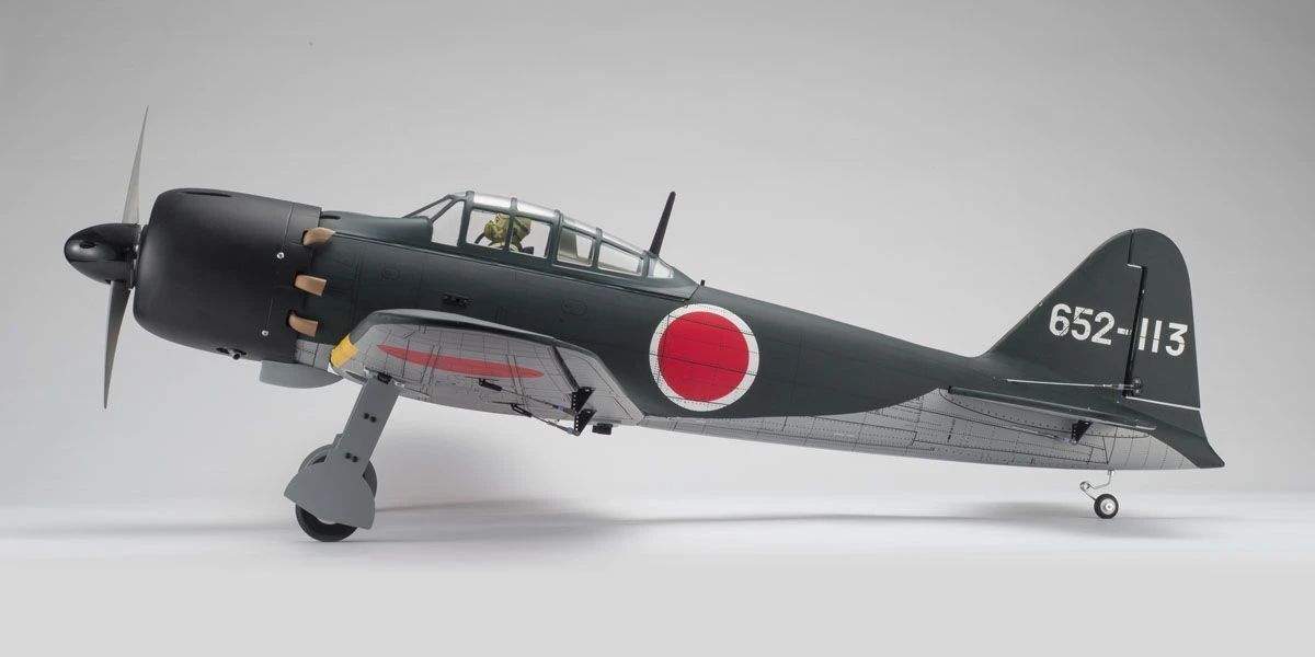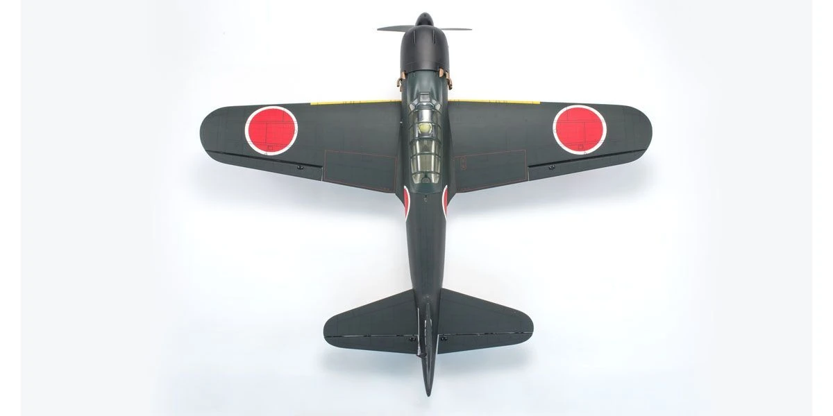 Playing its crucial role as the Japanese Navy’s main fighter, the Zero Fighter Model 52 joined the battle in the pacific theatre with its improved airspeed and reinforcements to counter the high speed of the American fighters from the middle of WWII through to the end. Now this famous fighter takes its place in the SQS Warbird Series lineup. A complex manufacturing process produces the lightweight and high-rigidity construction of the balsa ribbed main & tail wings and fuselage that realizes both superior flying performance and exceptional scale appearance. The printed Toughlon covering is highly durable, wrinkle and sag resistant, and recreates the Zero’s defining dark green and gray color finish in the highest quality. Split flaps and retracts with oleo legs not only deliver effective speed control and lift during takeoff and landing, but also recreate the movement of the original airplane. This semi-assembled ARF model is able to be completed by anyone and is easy to fly with a quality finish that will excite the most avid collectors of scale model aircraft. As a beautifully finished, fully equipped scale model airplane, the Zero Model 52 is ideal for advanced and intermediate level flyers wanting to launch into realistic scale flight.